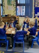Today we have had a visit from Delamere to teach Hatchmere the nursery rhyme ‘Little Bo Beep’. We had lots of fun with our Delamere friends learning the rhyme with the accompanying actions.