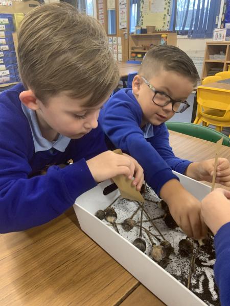 I was so very proud of the children on Remembrance Day. We had our 2 minute silence in our classroom whilst holding the poppies that each child had created. Each poppy had a word on it that the children thought described our Armed Forces- strong, protect, brave etc. Every child bowed their head and thought about those that had lost their lives and those who protect us today. We also harvested some poppy seeds and spread them in our allotment plot. It was a very moving moment for us all. Hopefully we will see the poppies bloom next year, both at school and from the seeds the children harvested to bring home.