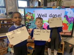 The Naughty Bus has arrived! I have a feeling he will be getting up to some mischief over the next few weeks. Part of the children’s literacy task this week was to label a bus. The children used their sound mats to support their writing, carefully forming their letters. Super work Hatchmere! Where is the Naughty Bus from? Ask your child to see if they can tell you.