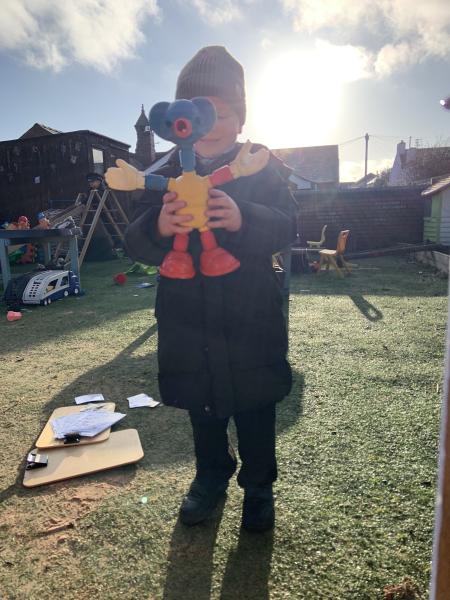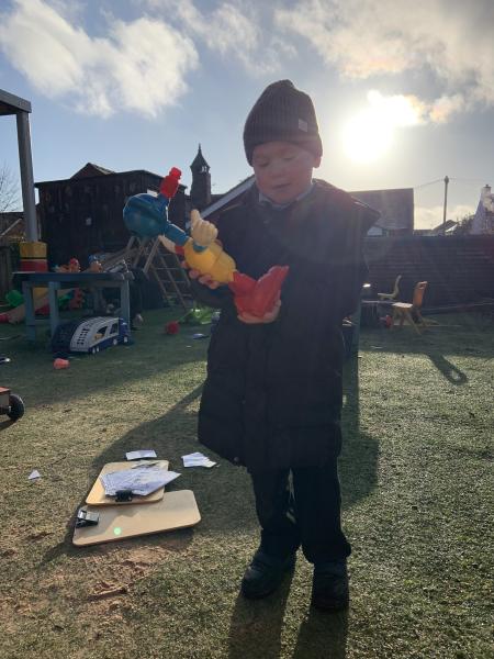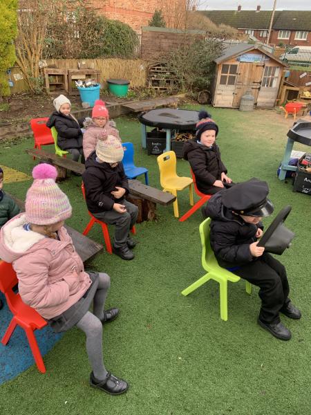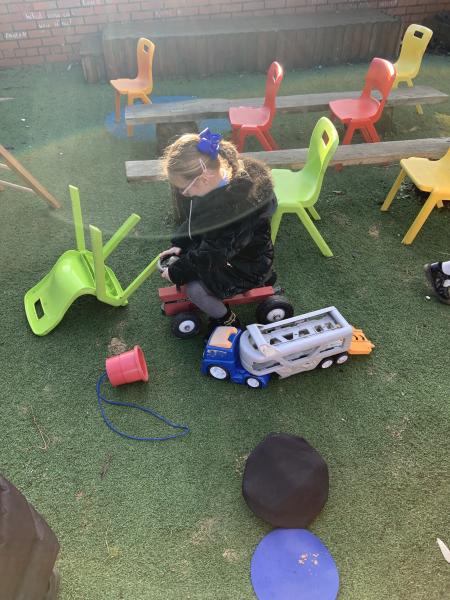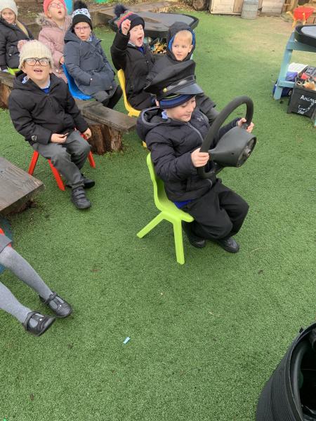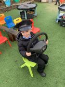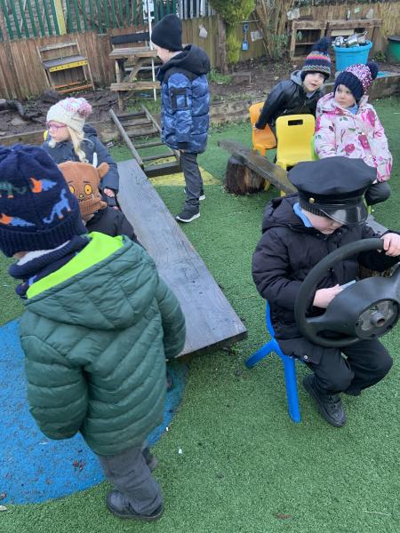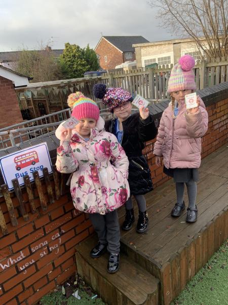 We have thoroughly enjoyed role-playing bus journeys in our Outside Classroom this week. We purchased our bus tickets, boarded the bus, gave the tickets to the driver, popped on our seatbelts (safety first!) and settled down for our adventures.The children have traveled to Polar Palace, Disneyworld, Legoland, Malta and The Fair to name but a few.