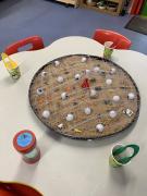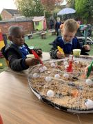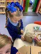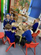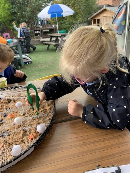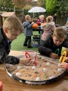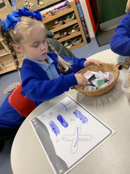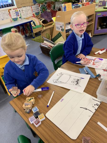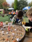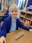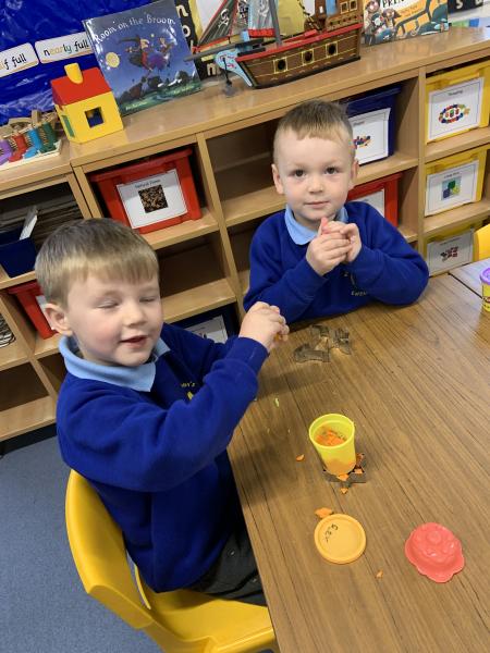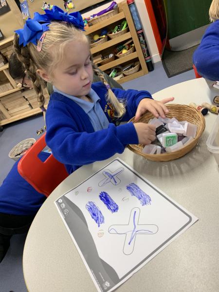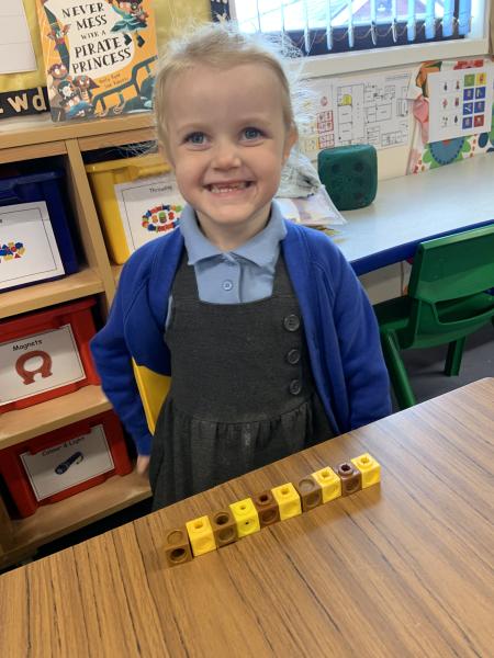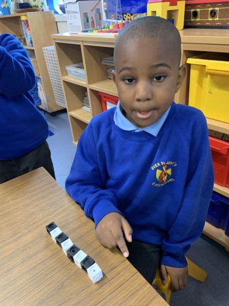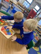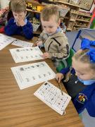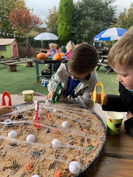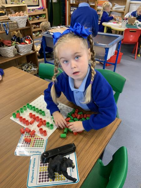 Our Mathematicians have put their thinking hats on this week to create different types of patterns. We have used animals, children, shapes to develop our skills. Alongside patterns we have been investigating basic shapes: square, triangle, rectangle and circle. We looked at points, sides and length. We even used shapes to create a rocket. We played our own spooky game where the children used their crocodile fingers to collect spooky treasure through a spiders web. They then counted and compared amounts. 'I have more than/fewer than' and used their 1:1 correspondence. Brillant maths work Hatchmere.
