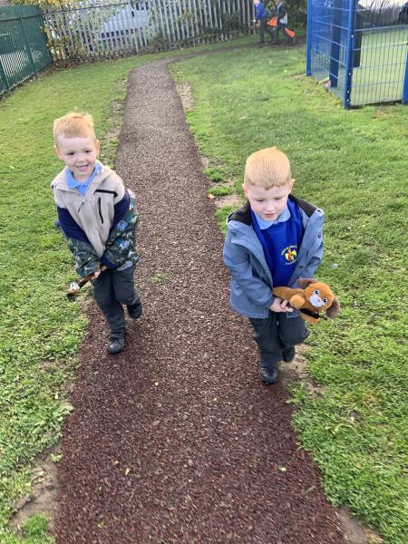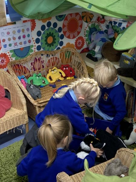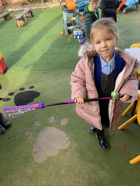 We also read Room On The Broom and Hatchmere had the best time re-enacting the story on their own brooms with their very own animals! There were lots of giggles.
