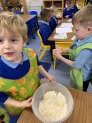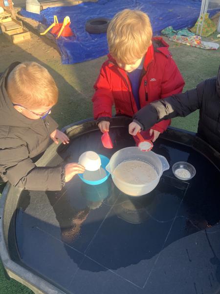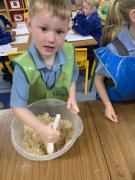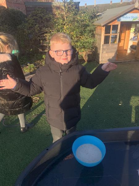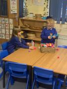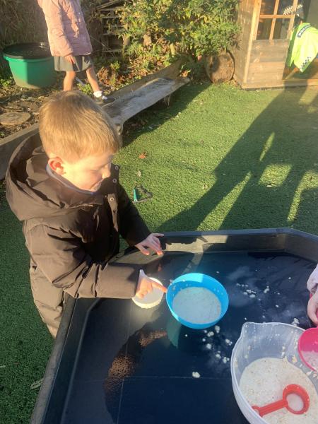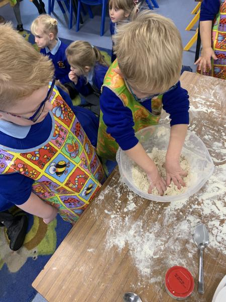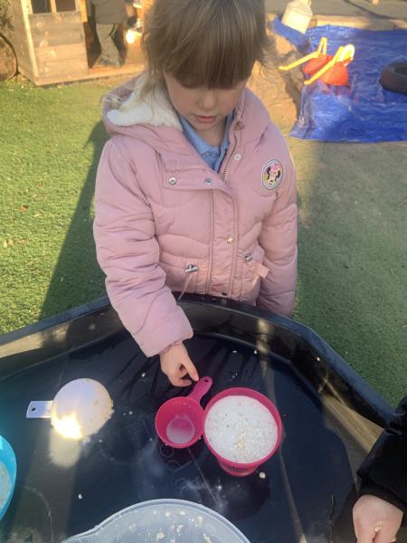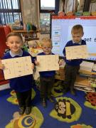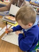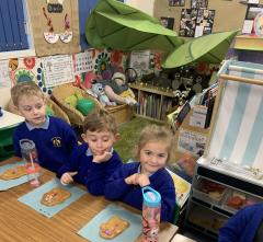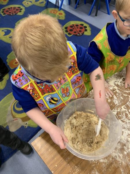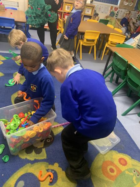 In maths the children have been using multilink to create different patterns. We discovered that the bigger the number the more patterns we could create. We have had lots of fun with our friends showing different representations of the numbers 3,4 and 5. Hatchmere have also served porridge in small, medium and large bowls, just like in Goldilocks and the Three Bears. The children were using their mathematical language to explain their size order.