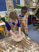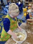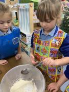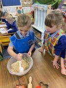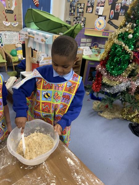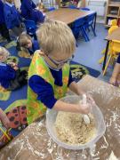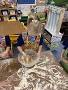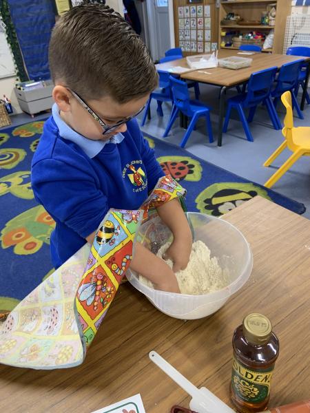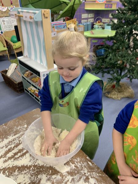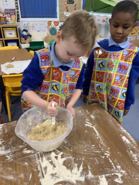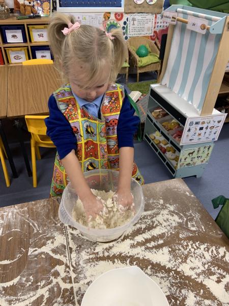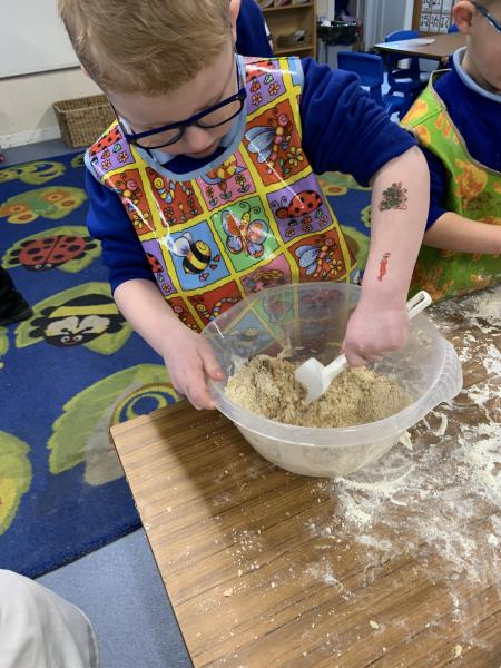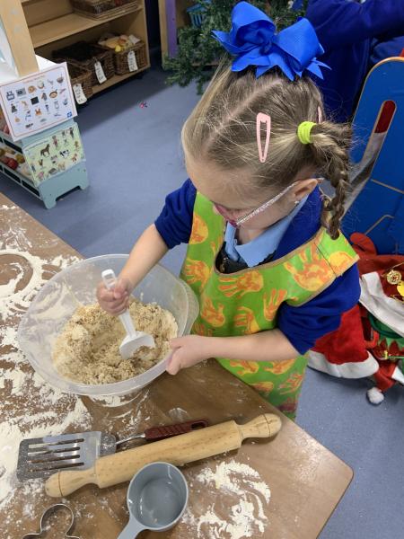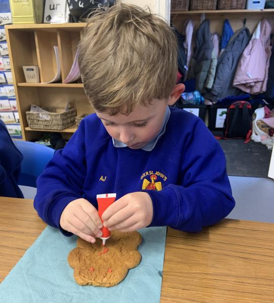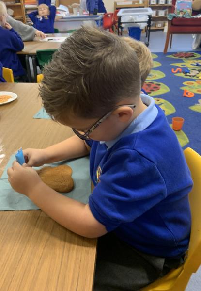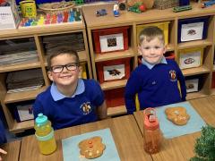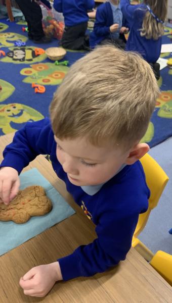 The Gingerbread Man couldn’t run away from us this week! The children followed a recipe to bake him, then decorated him and ate him all up, just like the fox. Yum, yum.