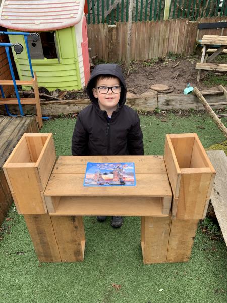 We have been having lots of fun on our bus tour of London. The children used their tickets to board the bus and said Good Morning and thanked our lovely bus driver. They then walked down the aisle to choose their seats. The Bus Driver has taken us to the London Eye, Buckingham Palace, The London Underground, for a boat ride on the River Thames and to Tower Bridge. Hatchmere have been taking this learning into their play and have, by themselves, visited lots of real and imaginary places.