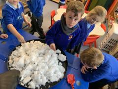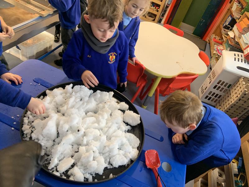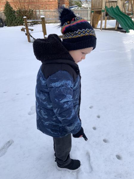 How beautiful was the snow!? Hatchmere thoroughly enjoyed getting bundled up and going outside to learn and create in the snow! Of course, we made snowballs, snowmen and some of the children even made snow angels. We listened carefully to the sounds our feet made when we were walking, the children all agreed that it sounded very crunchy. Hatchmere spotted some animal footprints in the snow and we followed them to see if we could find the culprit, the children were sure it was the naughty cat! We didn’t manage to find it though (Miss Dyson was relieved). Last but not least, we shovelled a load of snow into a bucket and brought it into our classroom to play with and observe…ask you child what happened to it and why.