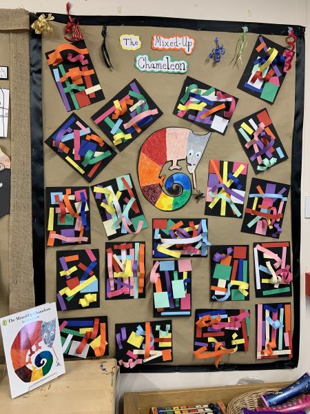 WORLD BOOK Day was a huge hit! The children looked so colourful. Our focus Text was ‘The Mixed-Up Chameleon’ by Eric Carle (he wrote one of our other favourites, The Very Hungry Caterpillar). We had so much fun getting all ‘mixed’ up, but then we realised, that just like the chameleon in our story, we quite like just being us. The children have created some amazing artwork to represent our focus text; it is already displayed proudly on our classroom wall. The picture is below.