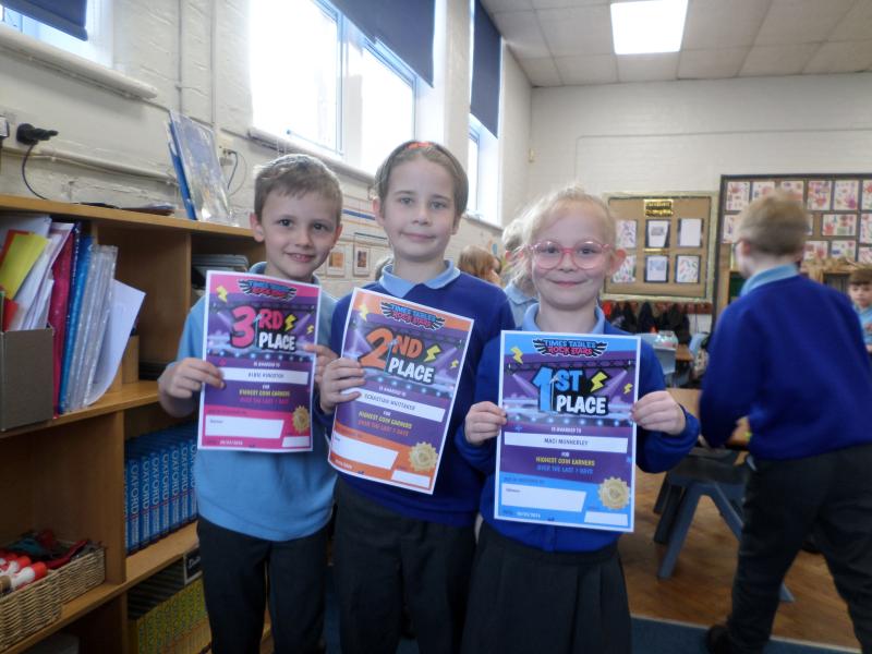 A big well done to our Times Tables Rock Stars winners this week: Maci, Sebastian, and Albie! We’ve been working extra hard to beat our class record for collecting coins.