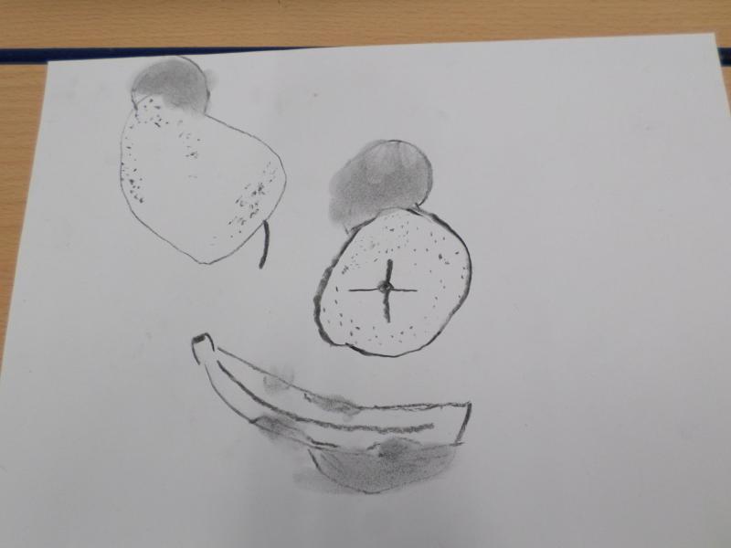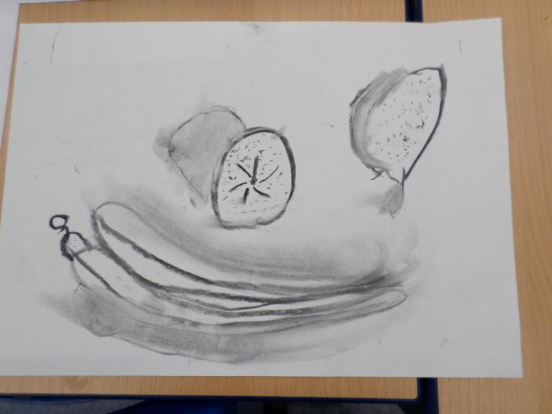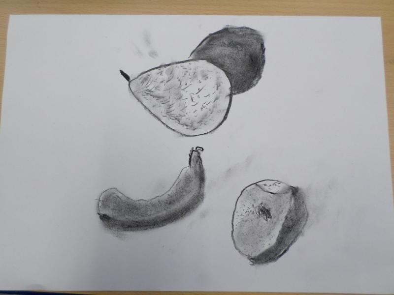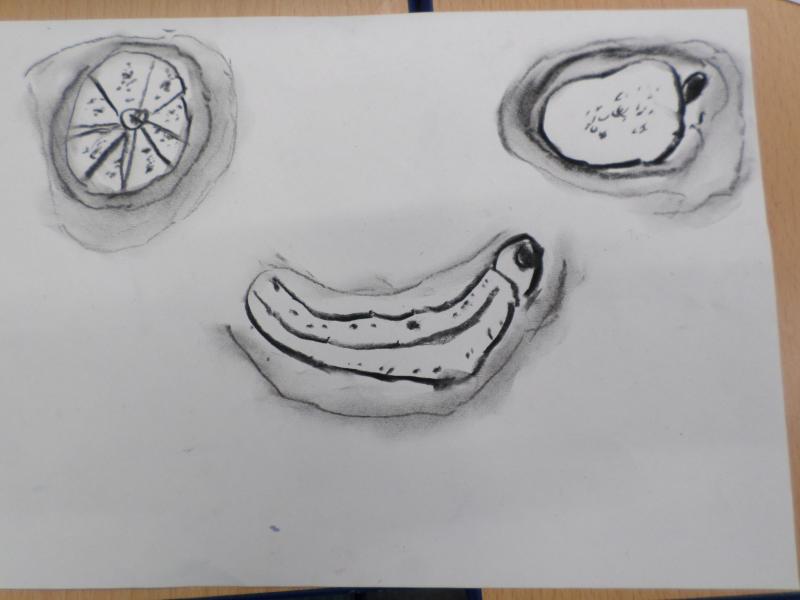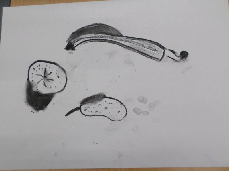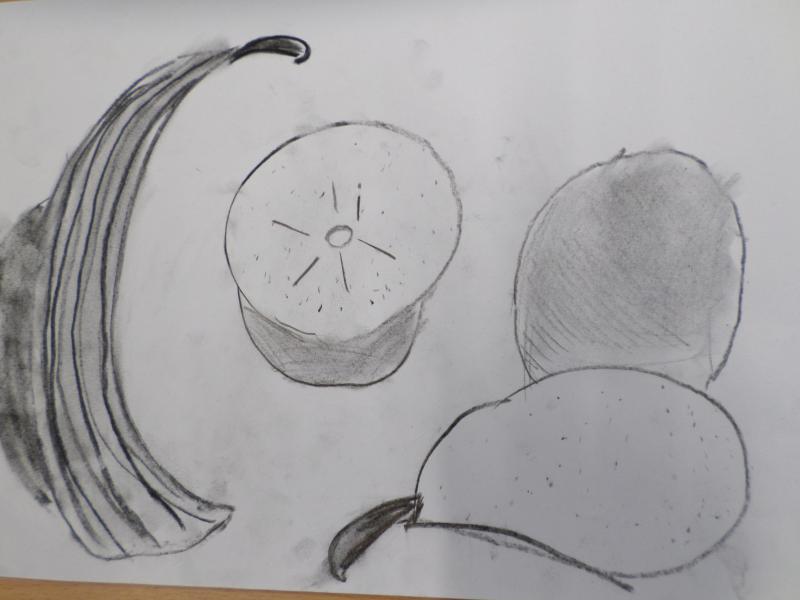 This week we applied our shading skills to create contrast in our fruit still life drawings. The results were amazing – check out the photos of our artwork! Next week, we’ll be learning about Carolyn Sweeney, an artist who uses natural materials to paint the world around her.